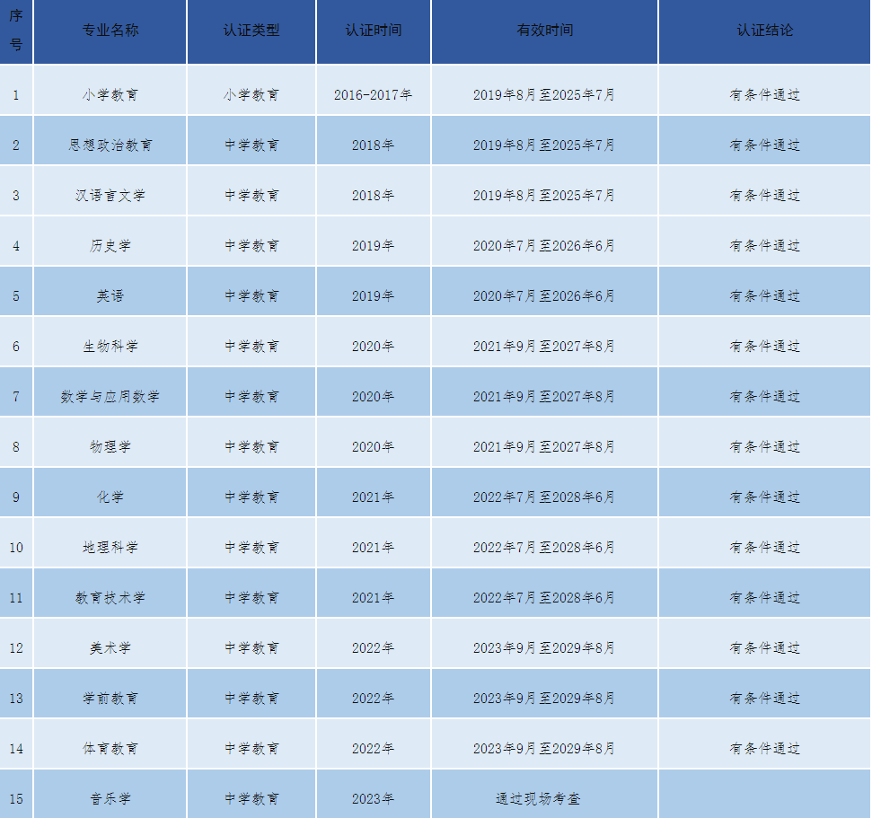 淮师新闻网10月25日电(记者 费名扬)近日,教育部办公厅公布2023年通过普通高等学校师范类专业认证专业名单及中期审核专业名单,淮阴师范学院美术学、学前教育、体育教育3个专业顺利通过中学教育第二级认证,认证有效期六年,从2023年9月至2029年8月;历史学和英语2个专业顺利通过师范类专业认证中期审核,继续保持原认证有效期至2026年6月。