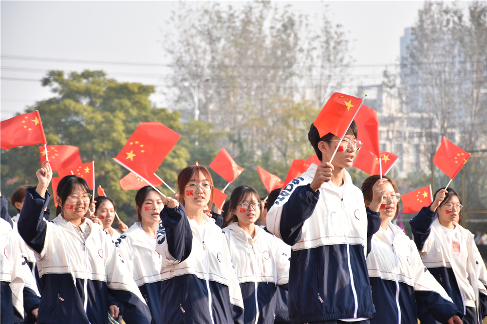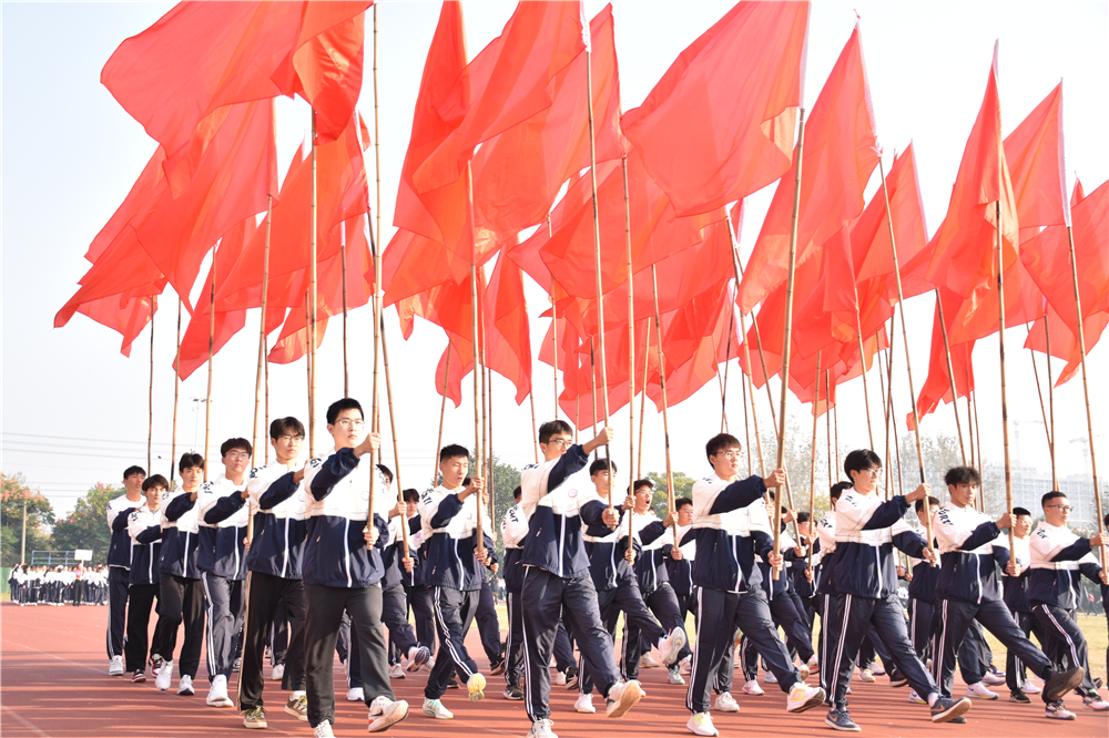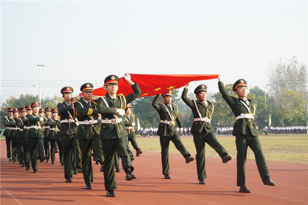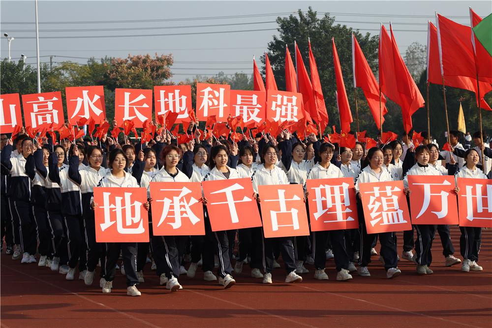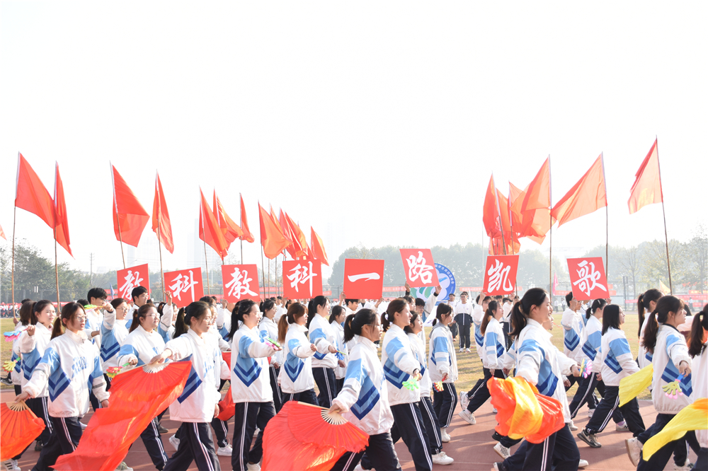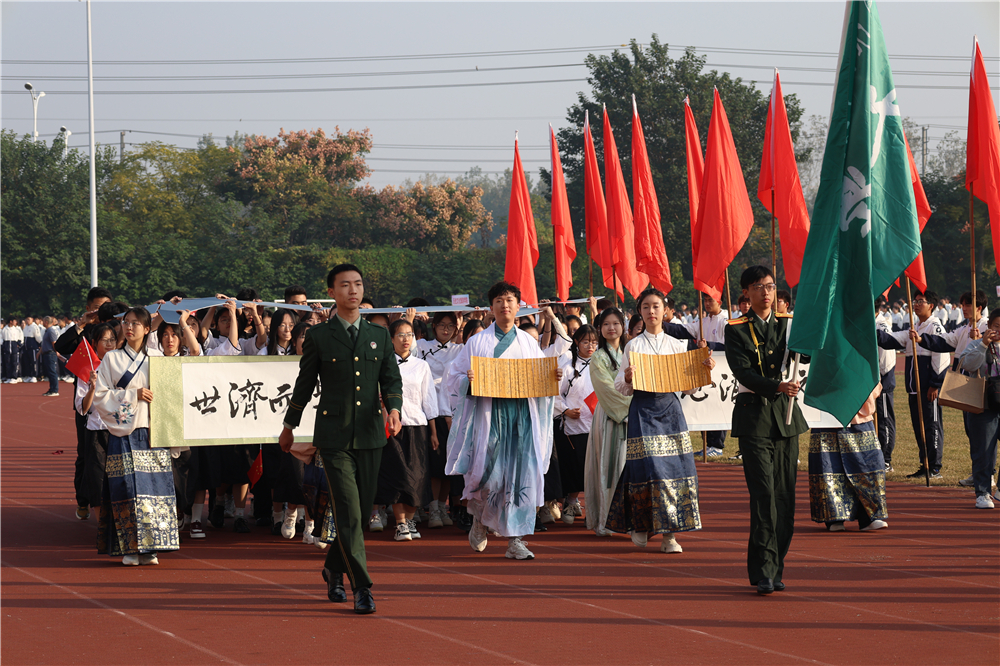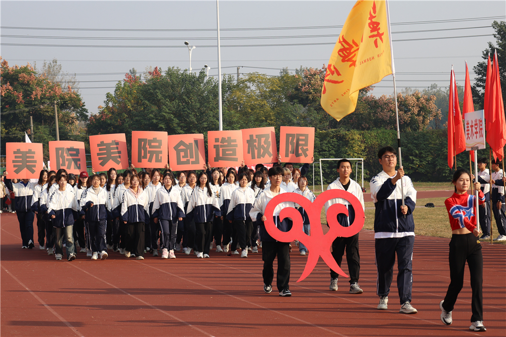 在激进昂扬的运动员进行曲中,国旗、校旗、会徽、彩旗、裁判员、研究生院、各二级学院等方阵依次入场,精神饱满地走过主席台。