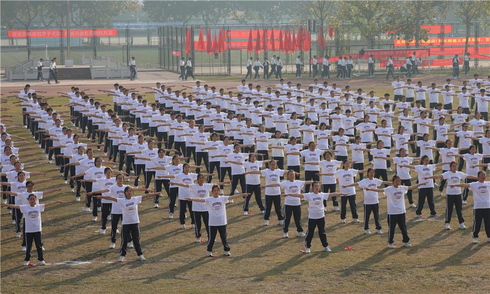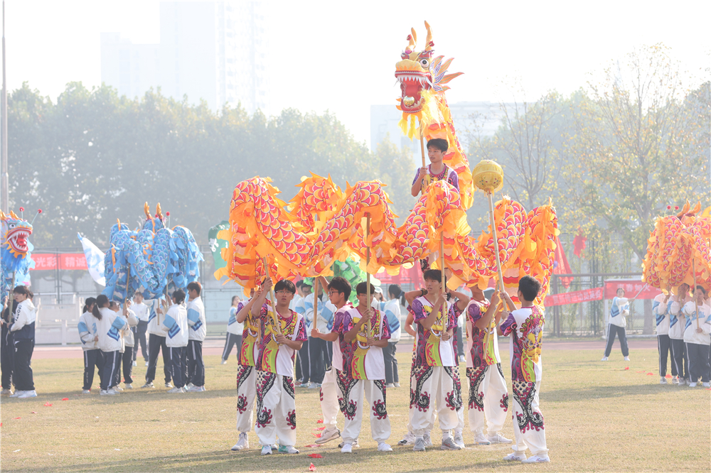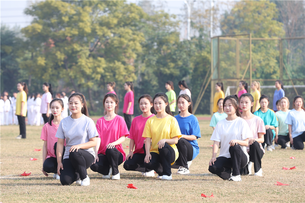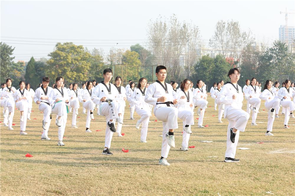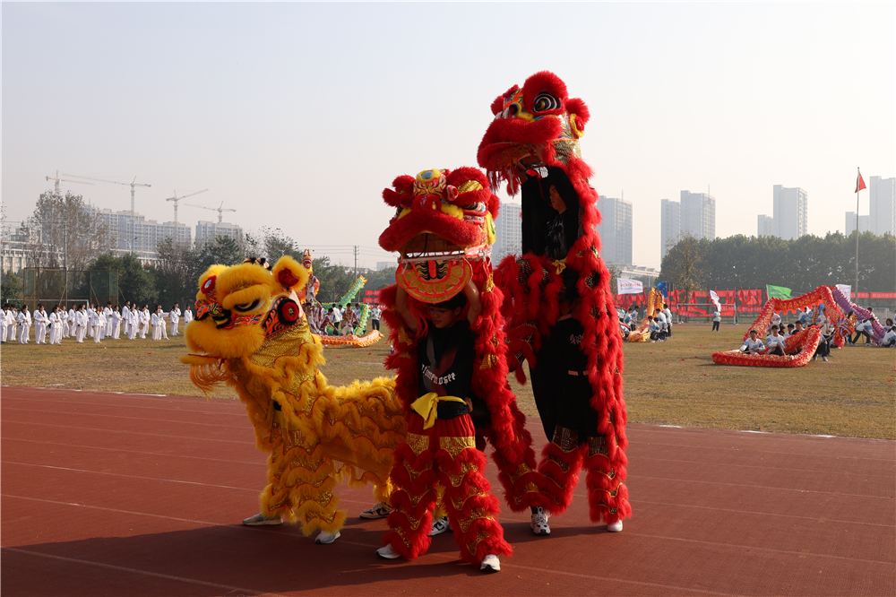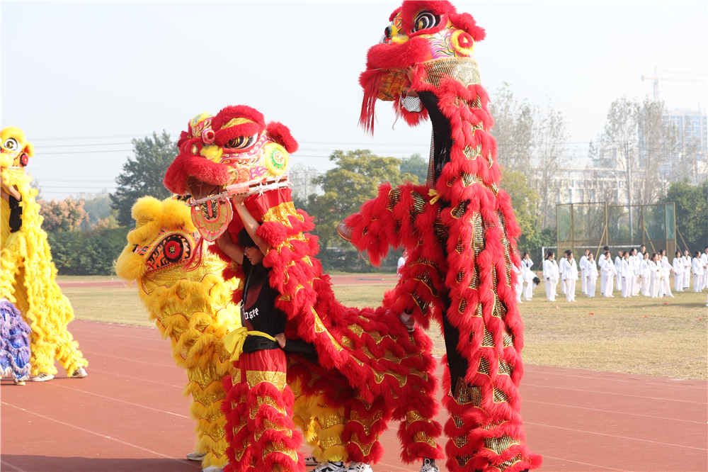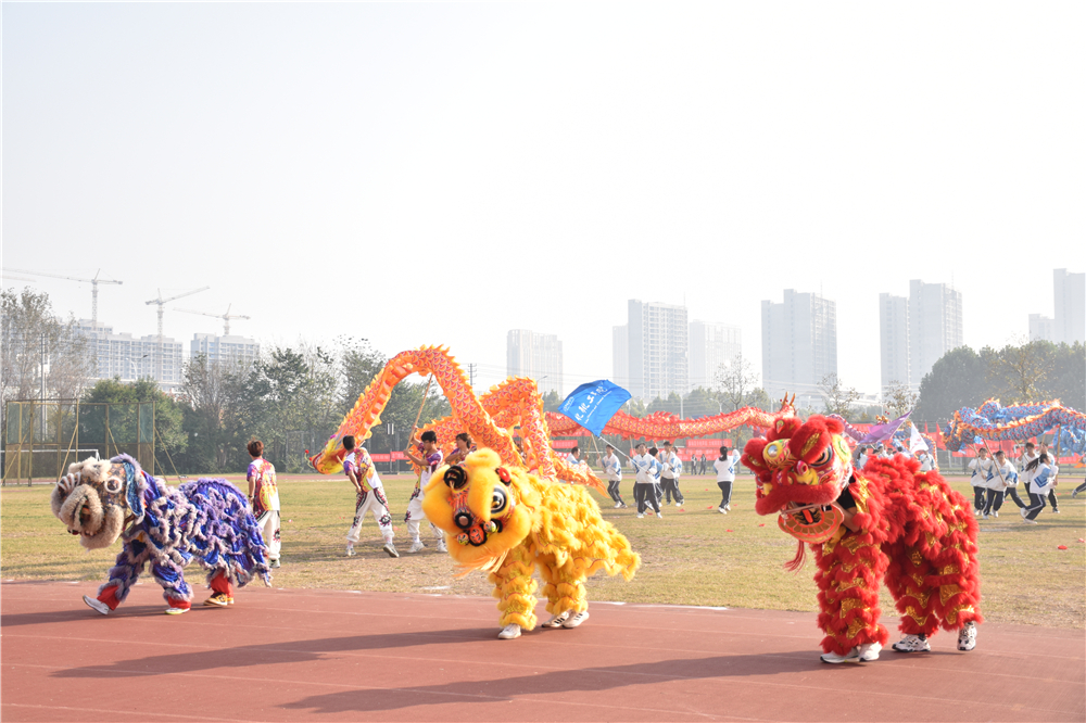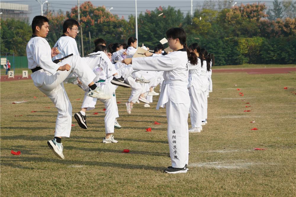 开幕式上举行了大型文体表演。《第十套广播体操》阳光体育展风采,广播体操亮风姿;《盛世欢歌》狮吼龙吟,生龙活虎,虎虎生威,彰显淮师人卓越的情怀;《跆拳道》以礼始,以礼终,忍耐克己,百折不屈;《相亲相爱一家人》其乐融融,场面欢快,尽显淮师风采。各个团队的精彩演出彰显了淮师学子的青春活力与蓬勃生气,点燃了赛场氛围。