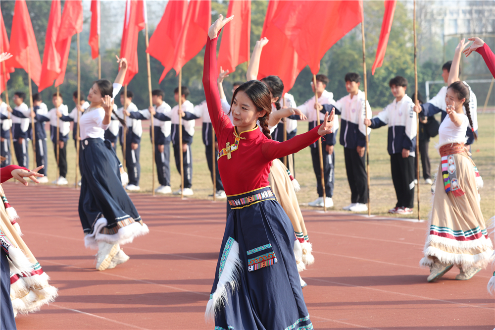 庄严的升国旗仪式之后,副校长闫超栋致开幕词。闫超栋指出,体育强则中国强,国运兴则体育兴。体育是实现立德树人根本任务、提升学生综合素质的基础性工程。党的十八大以来,以习近平同志为核心的党中央高度重视体育强国建设,始终把人民健康放在优先发展位置,将全民健身纳入国家战略,推动全民健身和全民健康深度融合。德智体美劳,“五育”需并举;奋斗新征程,健康是关键。体育运动是培根铸魂、健全人格、促进全面发展的重要载体。近年来,学校始终贯彻落实党的教育方针,以体育德、以体育智、以体育心,通过体育教育塑造学生良好的体育精神、运动能力和健康行为。一代代体育人和广大师生共同努力、锐意进取,为弘扬中华体育精神,发展体育运动,促进学生全面发展坚持不懈、辛勤付出,保证了学校体育工作呈现出蓬勃发展的良好态势。