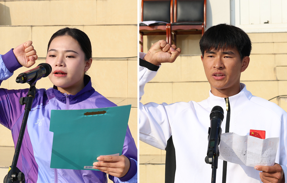 来自体育学院的曹文文老师和王思恩同学分别代表裁判员和运动员宣誓。