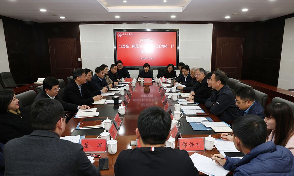 王鲁沛介绍了江苏第二师范学院的基本情况,并对淮师的办学质量、学科建设成果、教学改革理念等予以充分肯定。他期待双方能够进一步深化合作模式,强化合作力度,合力推动两校事业高质量发展更上新台阶。