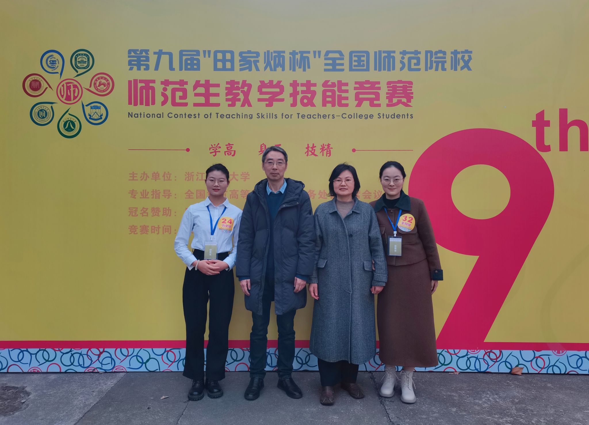 淮师新闻网1月3日电(记者 王蕊)12月31日,第九届“田家炳杯”全国师范院校师范生教学技能竞赛决赛在浙江师范大学举行。来自全国150所师范院校的优秀学子齐聚一堂,相互切磋技艺。经过激烈角逐,淮阴师范学院生科院冯亚婷同学荣获一等奖,历史学院韩雪晴同学荣获二等奖。此外,教科院戚甜甜、马院王冰璐和地科院张雨荣获三等奖,数统学院王思琪荣获优胜奖。