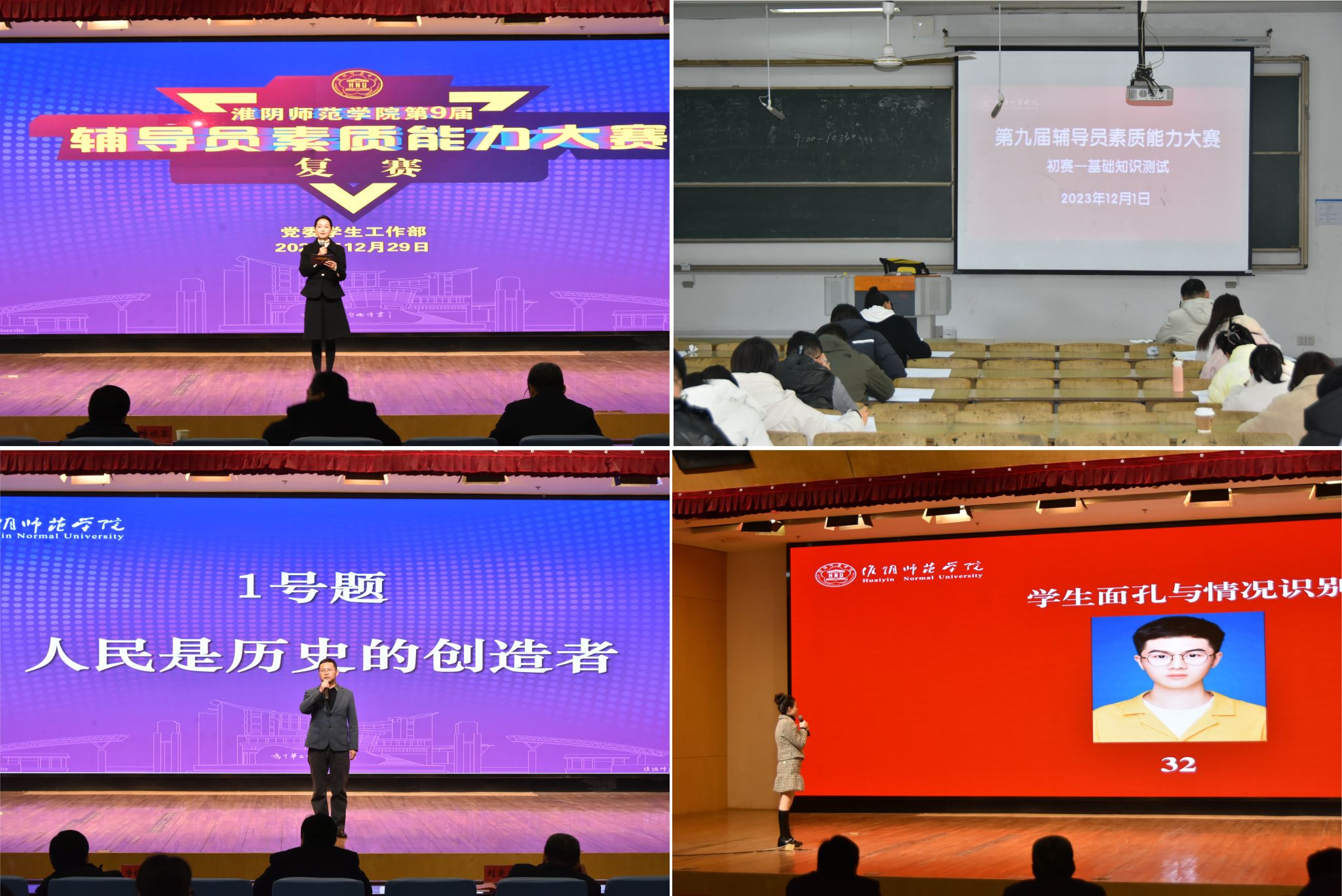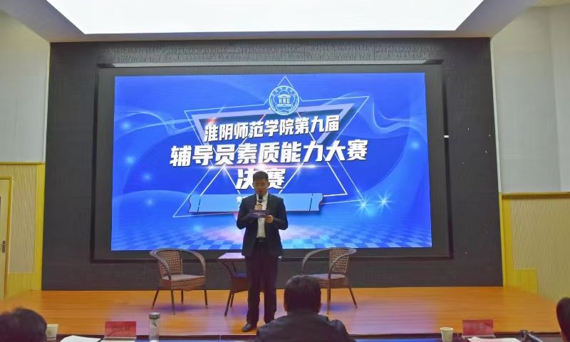 淮师新闻网1月9日电(记者 汪泽 刘文韬)为深入学习贯彻习近平新时代中国特色社会主义思想和党的二十大精神,推动学生思想政治工作高质量发展,进一步提升辅导员的专业水平和职业能力,近日,淮阴师范学院举行第九届辅导员素质能力大赛。1月8日,来自各二级学院共10名优秀辅导员在决赛中展开激烈角逐。副校长闫超栋,相关职能部门负责人出席并担任决赛评委,二级学院学生工作负责人及全体辅导员到场观摩比赛。