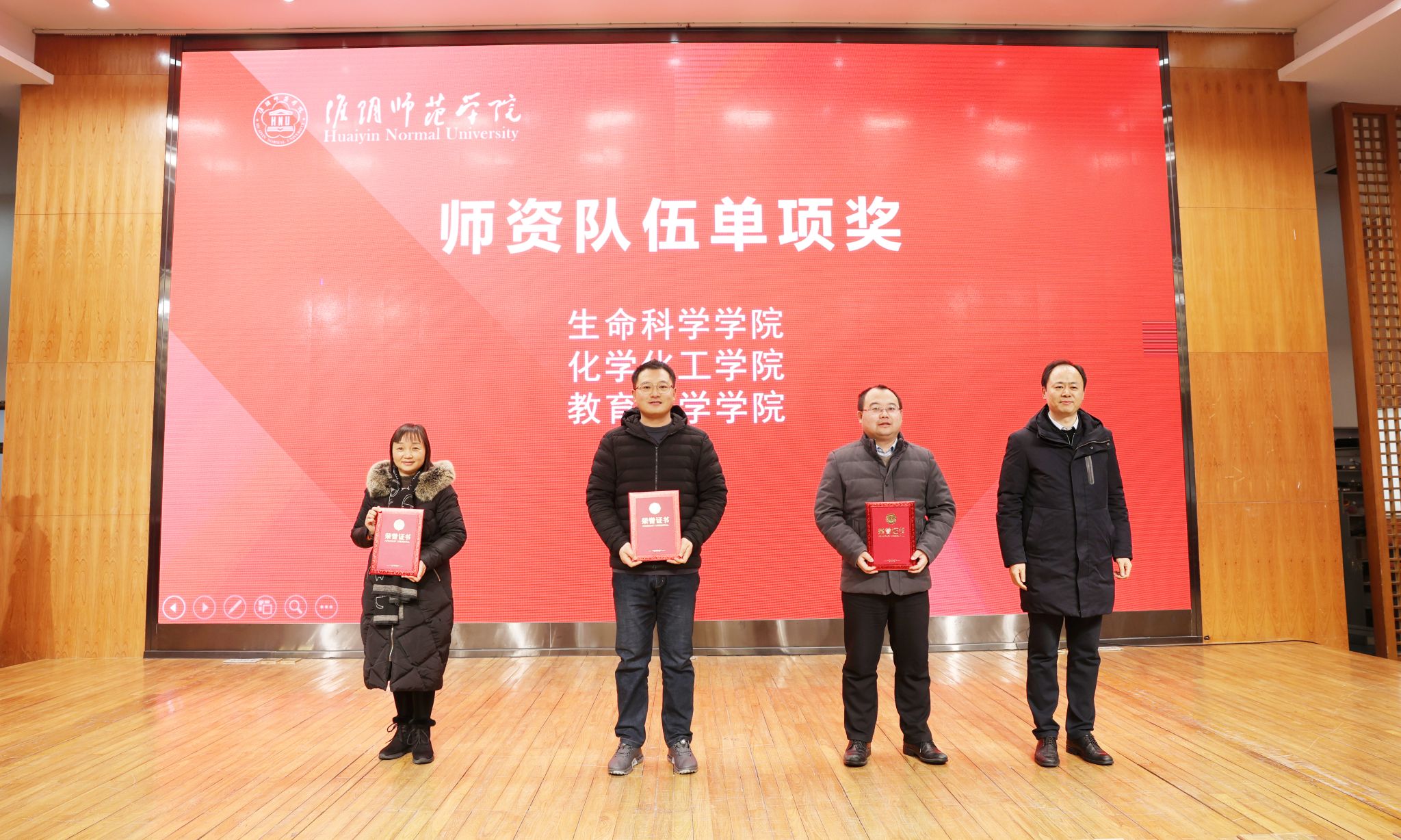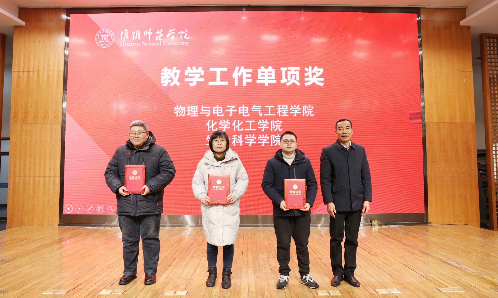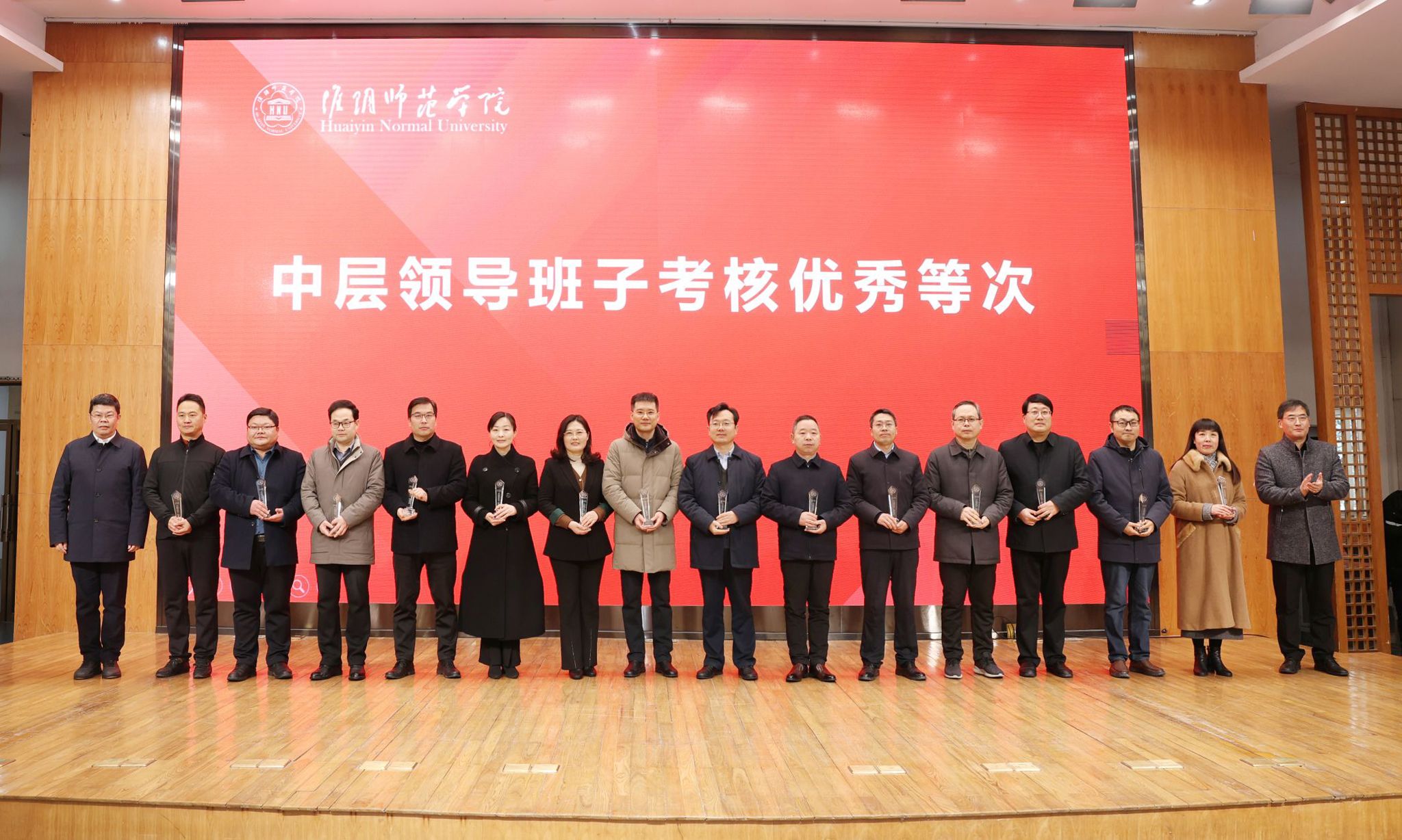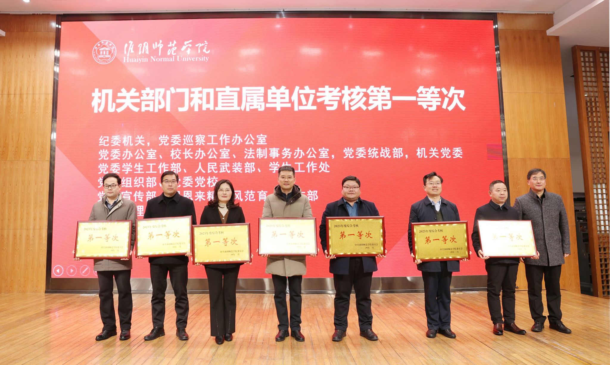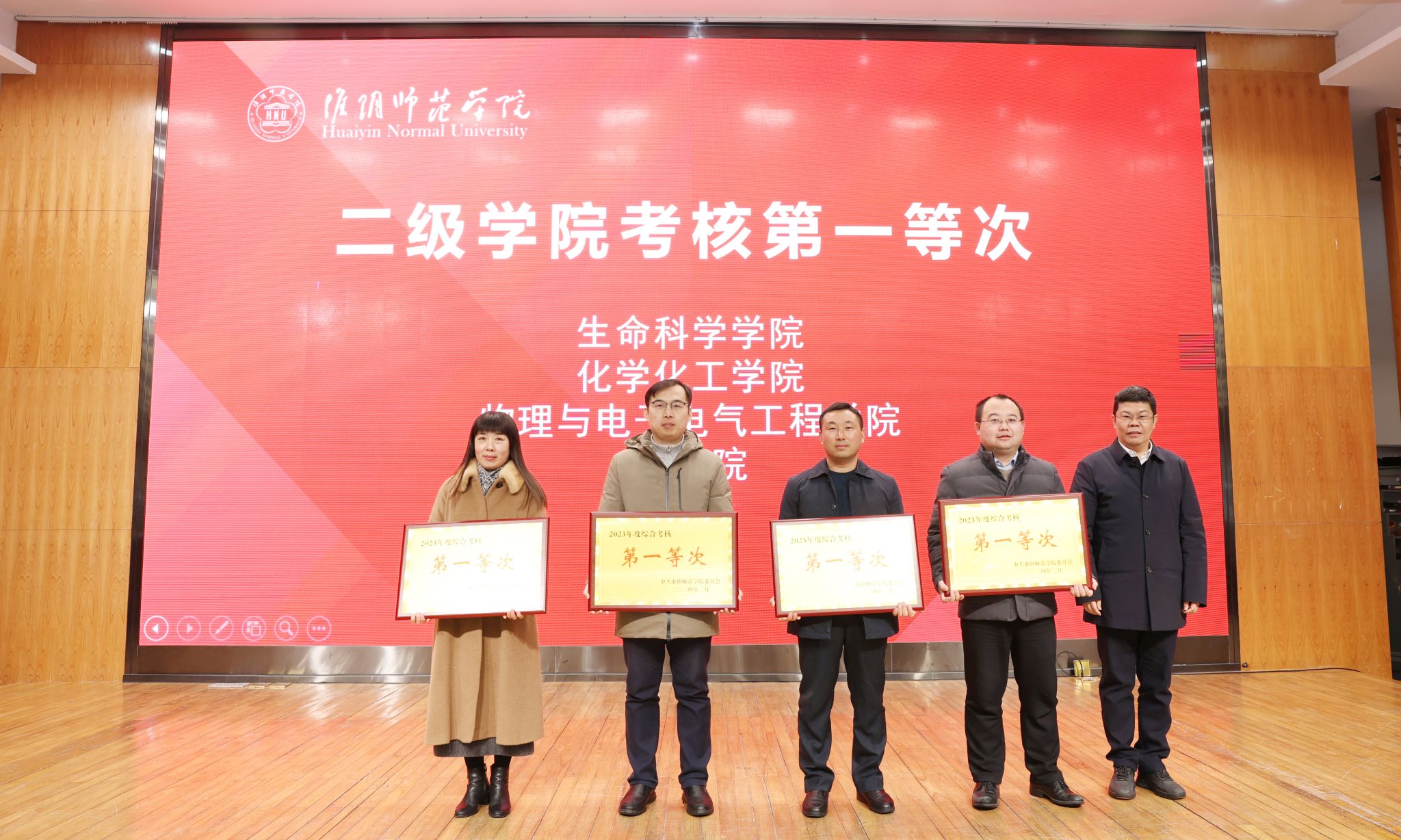 校领导分别为荣获综合考核第一等次单位、第二等次单位、年度最佳进步奖、优秀等次领导班子,以及党的建设、学科建设、科研工作、教学工作、师资队伍、学生工作考核前三名的单位颁奖。