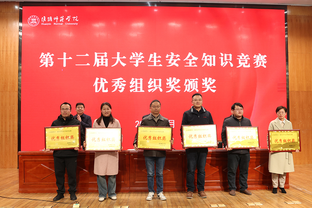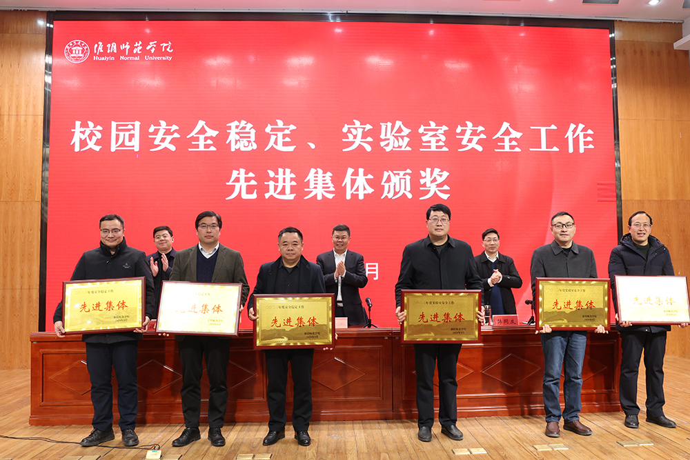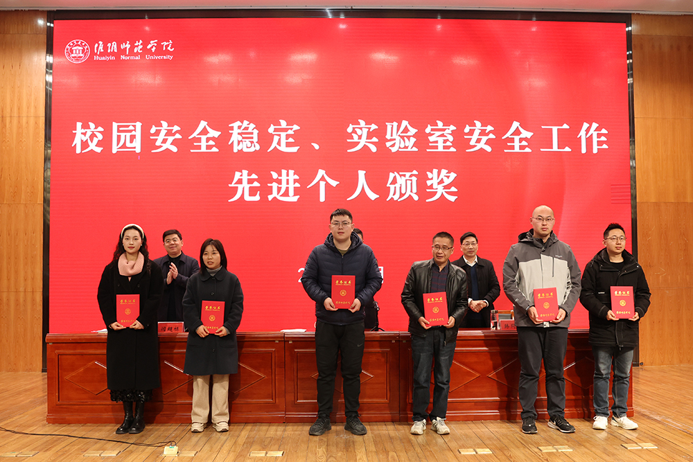 会上,校领导为安全稳定工作和实验室安全工作先进集体和个人代表、江苏省第十二届大学生安全知识竞赛优秀组织奖代表颁奖,并与各部门、各单位负责人签订了《淮阴师范学院校园稳定、治安消防安全责任书》。随后,获奖集体和个人代表作了交流发言。