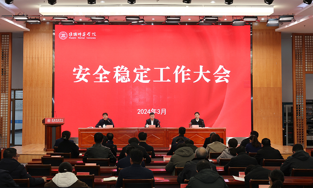 淮师新闻网3月14日电(记者 宫兆辉)3月13日下午,淮阴师范学院召开校园安全稳定工作大会。校长赵宜江出席会议并讲话,党委副书记韩同友作2023年全校安全稳定工作总结及2024年安全稳定工作部署。副校长闫超栋主持会议。