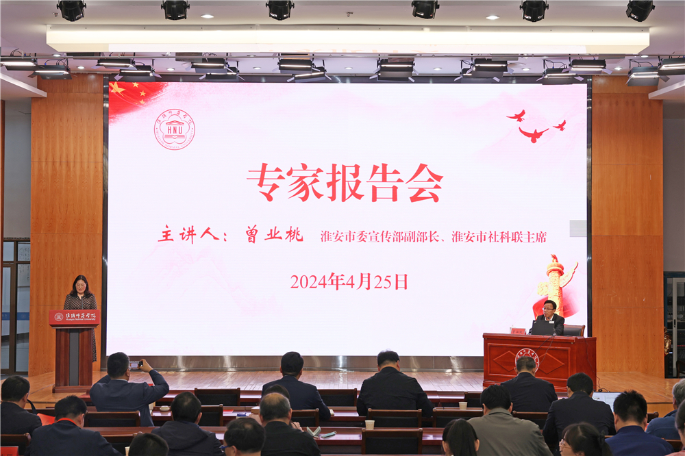 淮师新闻网4月26日电(记者 闫艳)4月25日下午,淮阴师范学院在长江路校区图书馆多功能厅召开2024年宣传思想文化工作会议。校党委书记尚洪波、党委副书记韩同友、副校长闫超栋,党委常委、宣传部部长管爱花,党委常委、统战部部长胡元林出席会议。淮安市委宣传部副部长、淮安市社科联主席曾业桃应邀作意识形态专题辅导报告。闫超栋主持会议。