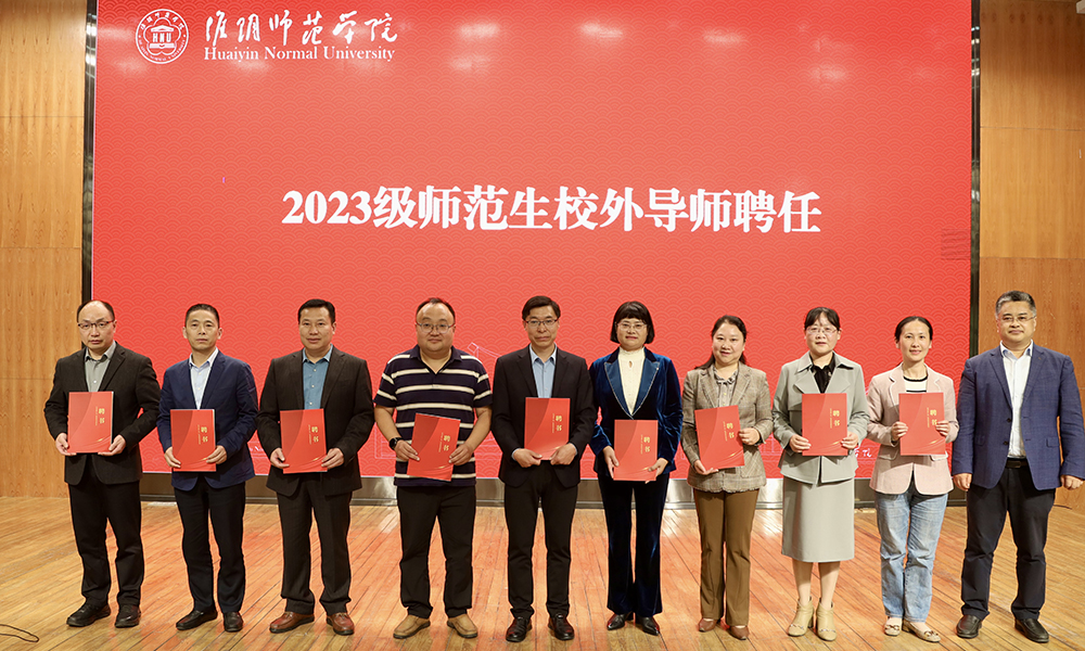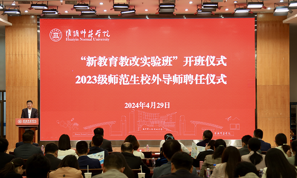 淮师新闻网4月30日电(记者 朱守信)4月29日下午,淮阴师范学院首届“新教育教改实验班”开班仪式暨2023级师范生校外导师聘任仪式在长江路校区图书馆多功能厅举行。淮阴师范学院校长赵宜江,淮阴师范学院杰出校友、中国陶行知研究会副会长、苏州市新教育研究院名誉院长、翔宇教育集团总校长卢志文,苏州市新教育研究院副院长杜涛,以及30余名来自淮安市基础教育一线的师范生导师出席活动,仪式由淮阴师范学院副校长毛广雄主持。