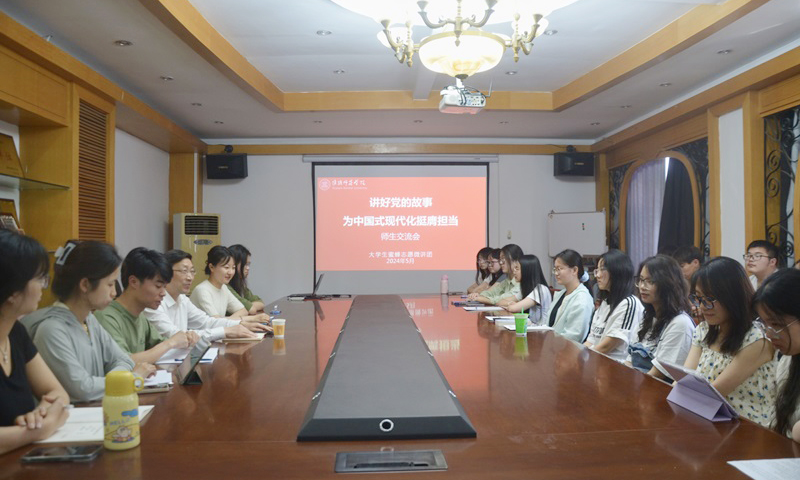 淮师新闻网5月22日电(记者 马晓雪 李翠尧)5月20日下午,校党委副书记韩同友来到马克思主义学院,以“讲好党的故事 为中国式现代化挺膺担当”为主题,与大学生蜜蜂志愿微讲团成员进行交流。会议由马克思主义学院辅导员马晓雪主持。