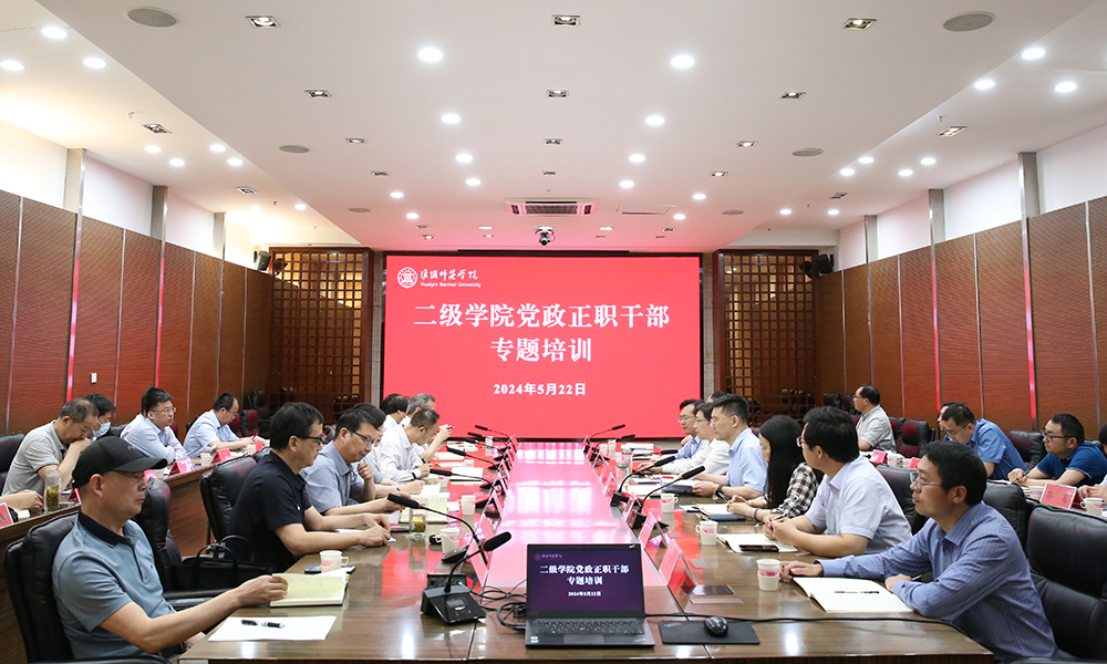 淮师新闻网5月23日电(记者 苗玮)为贯彻落实中央和省委部署要求,进一步提升二级学院党政议事决策质量水平,强化党组织政治功能和组织功能,5月22日,淮阴师范学院在图书馆第一会议室举行二级学院党政负责人专题培训会。校党委副书记韩同友出席会议并讲话。