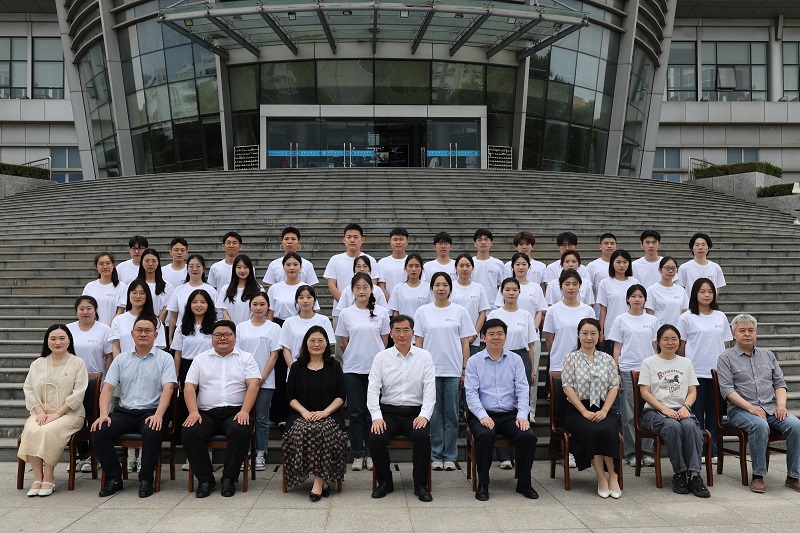 图为与会领导与毕业生代表合影留念。记者 唐瑀 摄