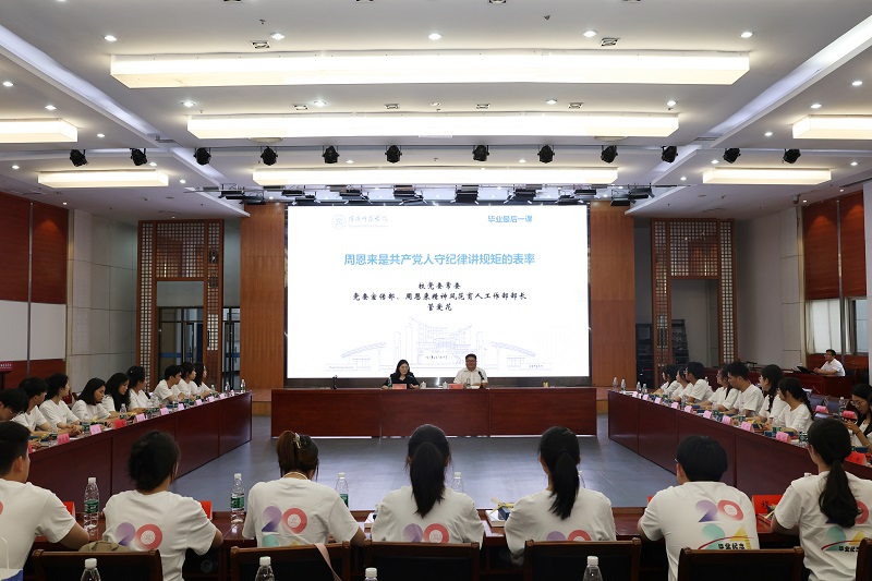 座谈会后,校党委常委、宣传部、周恩来精神风范育人工作部部长管爱花为参会的毕业生党员讲授题为“周恩来是共产党人守纪律讲规矩的表率”的党纪学习教育专题微党课。