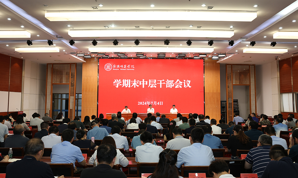 淮师新闻网7月4日电(记者 唐瑀)7月4日下午,淮阴师范学院在长江路校区图书馆多功能厅召开学期末中层干部会议。校党委书记尚洪波出席会议并讲话,校长赵宜江部署学期末及暑期工作,校党委副书记韩同友主持会议,全体校领导出席会议。