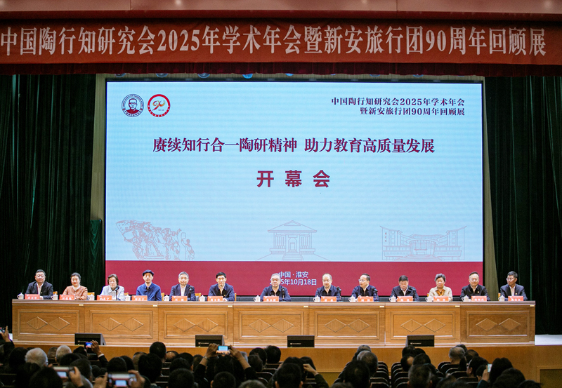 淮师新闻网10月22日电(记者 唐瑀)10月18日至19日,中国陶行知研究会2025年学术年会暨新安旅行团90周年回顾展在淮安举行,参会代表围绕“赓续知行合一的陶研精神,助力教育高质量发展”开展研讨。年会由江苏省陶行知研究会、淮阴师范学院承办。全国政协副主席、中国陶行知研究会会长朱永新出席开幕会并发表主旨讲话。淮安市人民政府市长顾坤致欢迎辞,江苏省教育厅厅长江涌和教育部基础教育司副司长游森致辞,江苏省人大原副主任柏苏宁代表新安旅行团团员后代发言。开幕会由中国陶行知研究会常务副会长、秘书长陈洛主持。
