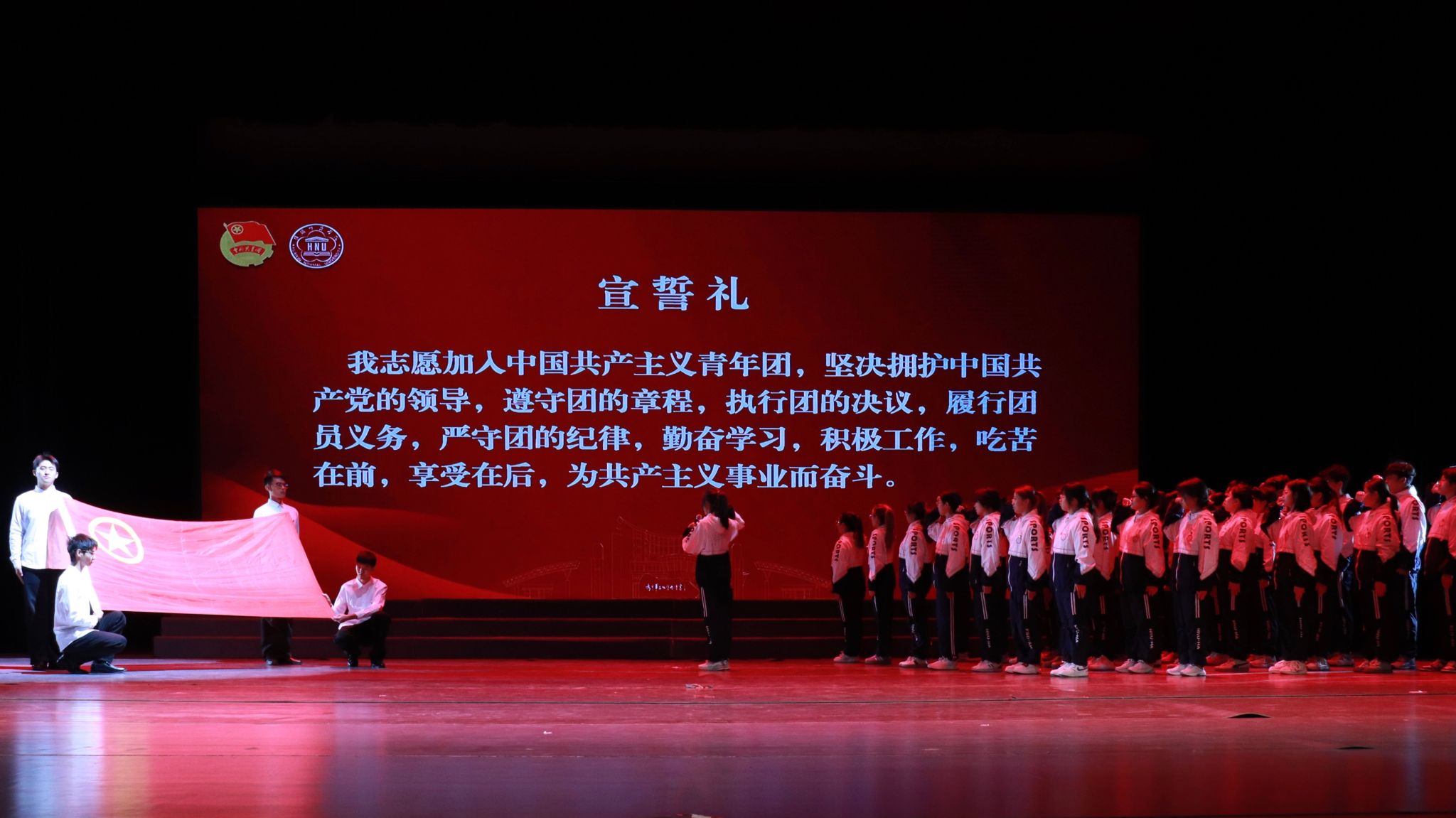 入团仪式上,丁红燕向新团员们祝贺,向关心与支持学校共青团事业发展的各位老师与同学表示诚挚谢意,并对广大新团员提出殷切希望,寄语广大新团员要追光而行,做理想远大、信念坚定的先锋者;要负重致远,做挺膺担当、艰苦奋斗的实干者;要敏学求新,做本领过硬、拥抱未来的开拓者;要明德修身,做品格高尚、引领风尚的践行者。与会领导向新团员代表颁发团员证、佩戴团徽,现场宣布新团员名单,新发展团员代表进行庄严宣誓。