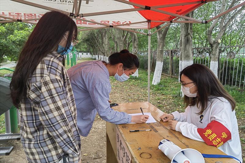图为学生党员志愿服务队协助每日的核酸检测工作