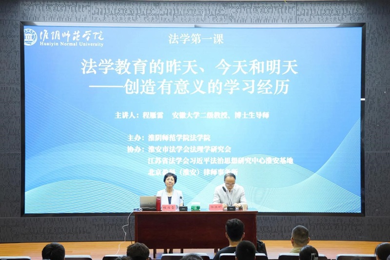 淮师新闻网9月29日电(记者 曹泽爱)为加强新生对专业的理解和认识,明确专业学习规划,9月26日下午,法学院特邀安徽大学二级教授、博士生导师程雁雷教授,于交通路校区逸夫报告厅开展“法学第一课:法学教育的昨天、今天和明天——创造有意义的学习经历”专题讲座,法学院院长郭兴利主持讲座,法学院全体2025级新生、部分2025级研究生参加本次讲座。