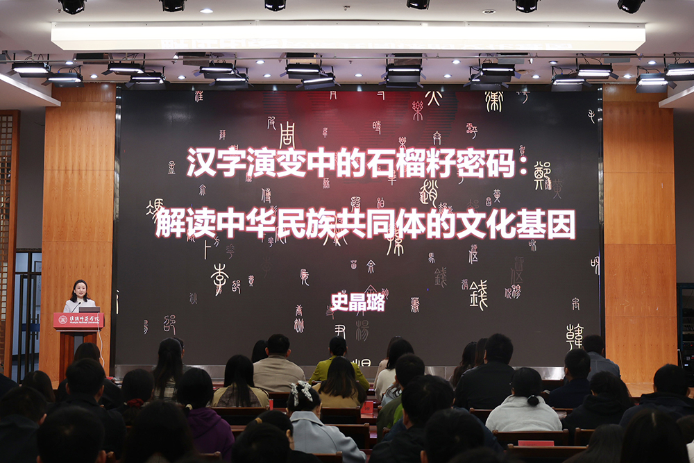 随后,机关党委史晶璐以“汉字演变中的石榴籽密码:解读中华民族共同体的文化基因”为题,分享思政微课。她从汉字字音、字形、字义的历史演变出发,结合各民族交往交流交融的生动案例,解读中华民族共同体的文化基因与精神密码。