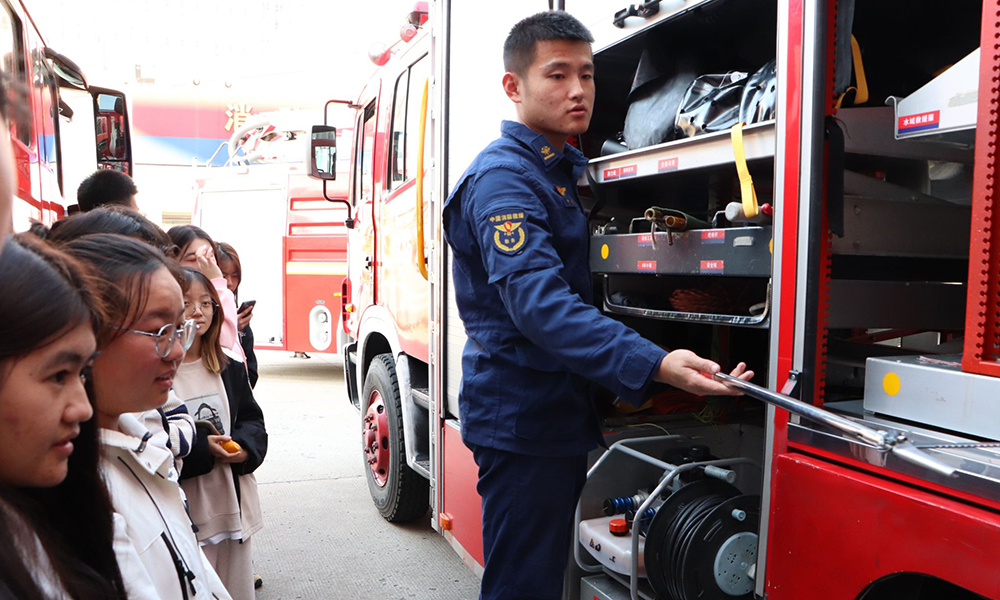 图为文学院组织开展“119消防宣传月”参观学习活动。记者 孔斌 摄
