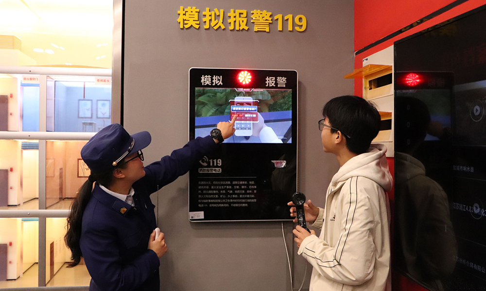 在消防科普教育馆,消防宣传文员申静结合秋冬季校园火灾防控要点,系统讲解了火灾预防与应急处置知识。她通过电气火灾模拟实验台,现场演示电动车违规充电、线路过载等常见隐患的成因与危害,并针对不同火场环境,详细阐释“小火快跑、浓烟固守”的逃生原则与实施要领。在案例分析环节,申静结合高校典型火灾事故,剖析违规使用电器设备的严重后果,增强同学们对火灾风险的直观认识。