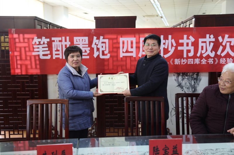 图为陆宝益书记向国华抄书社颁发优秀组织奖。记者 钱思晨 摄