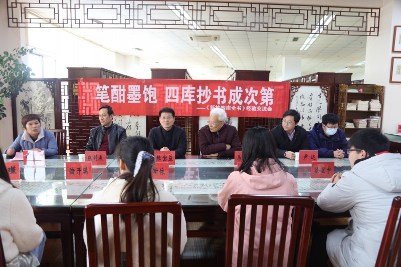 淮师新闻网3月23日电(记者 侯富芳)3月19日下午,图书馆在五楼特藏室举行了以“笔酣墨饱 四库抄书成次第”为主题的《新四库全书》抄写经验交流会。抄写者代表及部分馆领导参加了会议。交流会由图书馆国华抄书社负责人、图书馆第二党支部书记侯富芳主持。