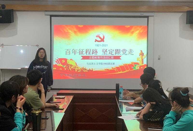 各班级按照顺序依次进行汇报交流,这一环节颇为热烈,各班级汇报各有特色、活动举办各有特点。进入主题教育月以来,1902班共举办了六场活动,活动形式多样,从班级内的公开课到走出校园的志愿宣讲,活动均已在学院微信公众号进行新闻展示,汇报人谭译表示1902每一位同学将一直坚持主题教育月学习的党史知识,理论联系实际,不畏困难,再创辉煌。2001班姜艺颖从基本情况概述、具体情况汇报和活动总结反思三部分汇报了班级所开展的六场活动,她表示2001班将会认真思考得与失,砥砺前行做到更好。2002班立足学校号召以及学院要求,将班级开展的十场活动分为理论学习活动与实践教育活动进行汇报,详细展示了十场活动的活动照片与活动效果,班级参与率很高并且十分注重宣传,汇报人储姗表示班级会认真总结,更积极地组织好、宣传好每项活动,立足实际,让同学们有收获能满意。