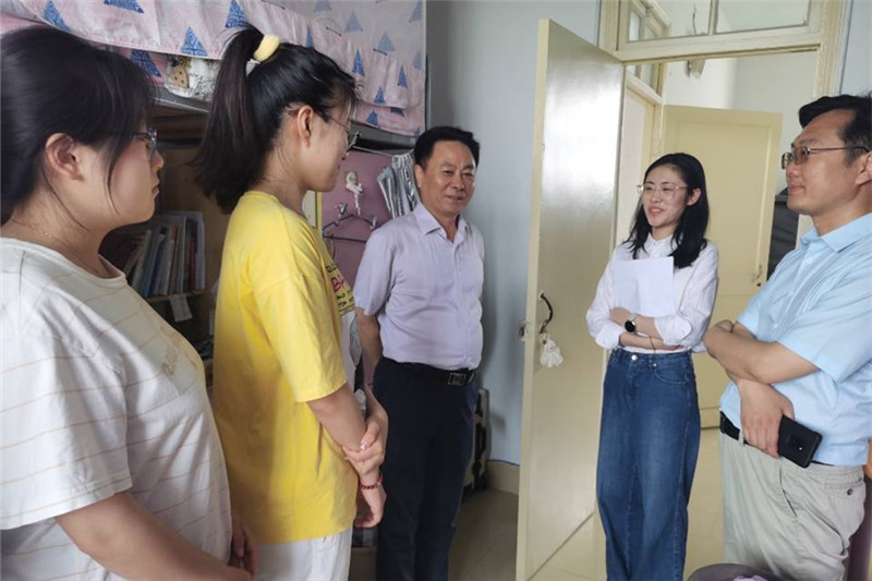 图为校领导走访一线与学生交流。记者 张春 摄