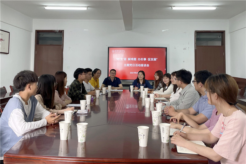 活动的第一个环节是座谈交流。支部在前期调研的基础上,结合工作岗位,面向不同群体学生,同时召开学生会及学生社团代表、毕业生代表、困难学生代表、少数民族学生代表、退伍大学生代表五场座谈会,倾听“生”音,答疑解惑,助力发展。